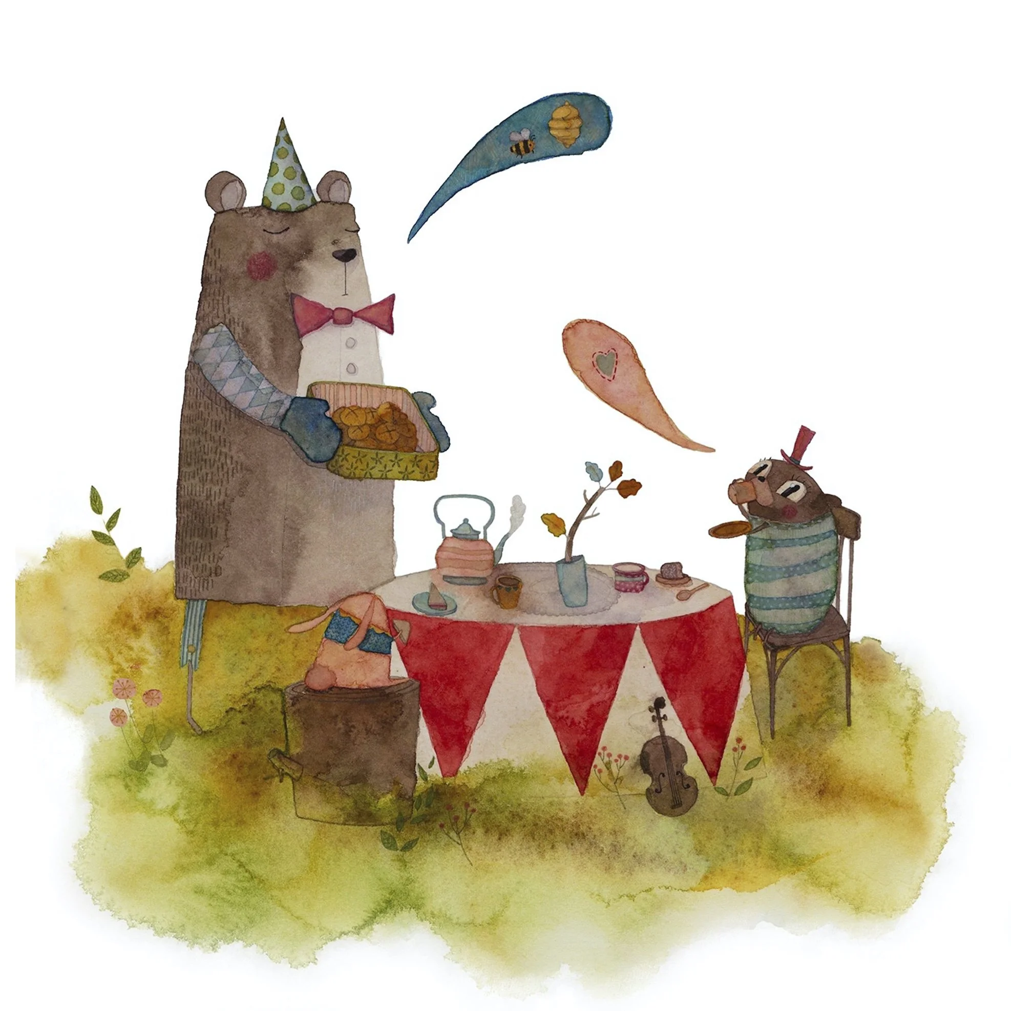 watercolor painting of an animal tea party for a children's picture book View fullsize